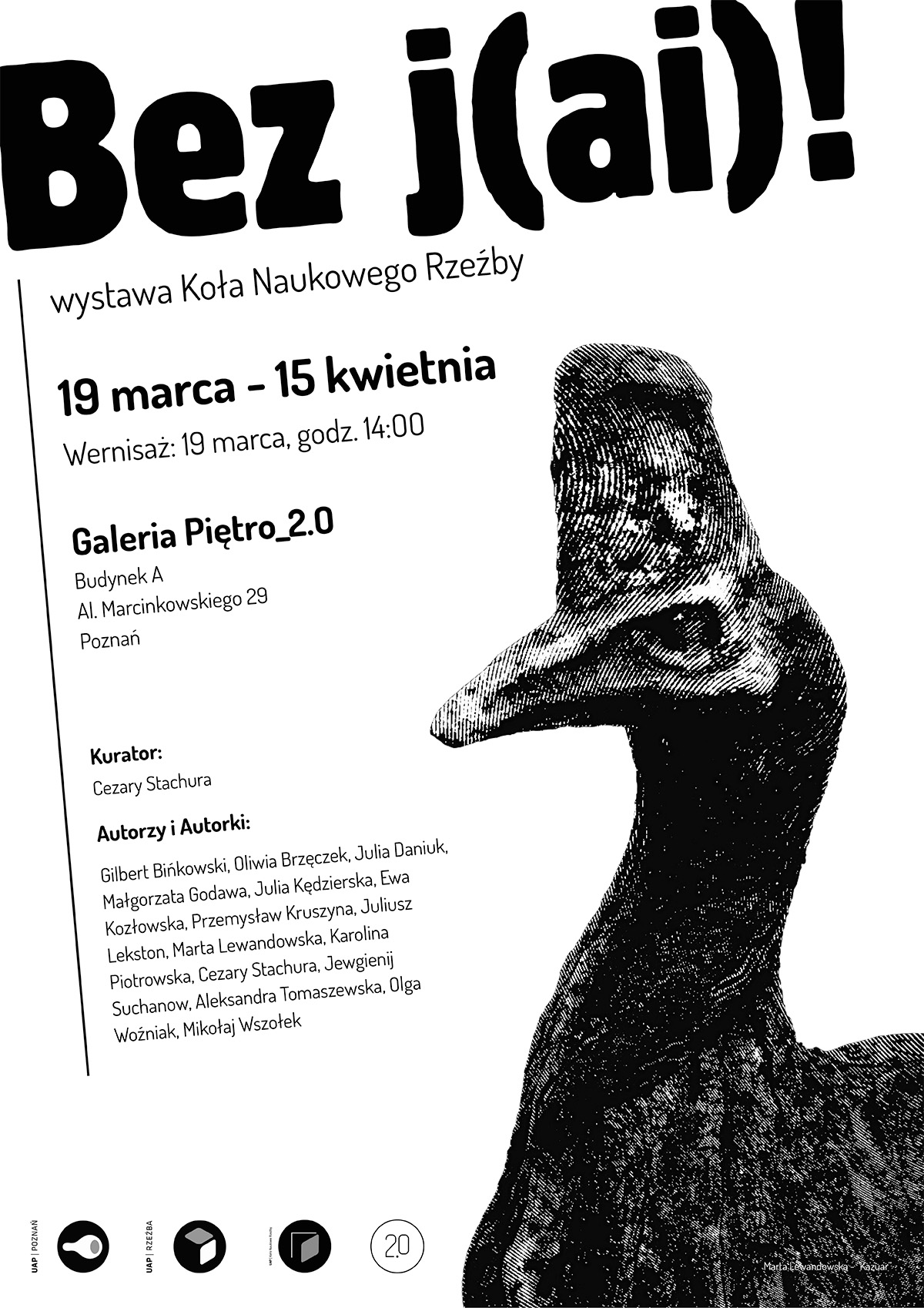 Zapraszamy na wystawę „Bez j(ai)!” organizowaną przez Koło Naukowe Rzeźby. Wernisaż odbędzie się 19 marca o godzinie 14:00 w Galerii Piętro_2.0, Budynek A, Al. Marcinkowskiego 29. Wystawa jest komentarzem do współczesnej tendencji korzystania z narzędzi cyfrowych i AI w sztuce, jednocześnie skupiając się na pracach ściśle materiałowych, stawiając formę i […]